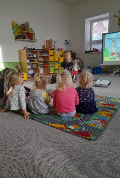 Dne 10.11. přijela paní Hanka z projektu Zdraví dětem do Malého království s pohádkou "Zdravík a zvířátka z kouzelného lesa".