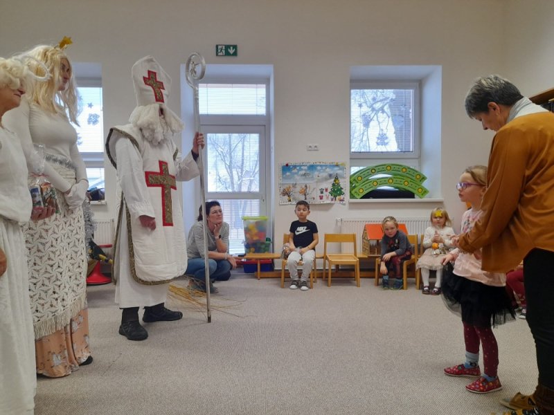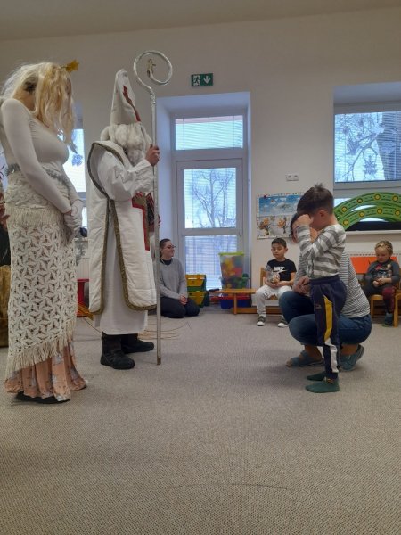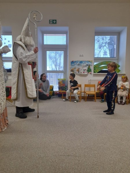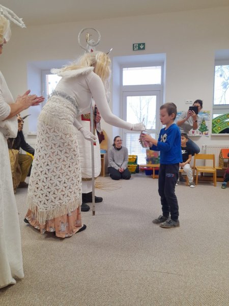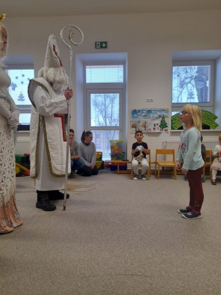 Dne 5.12. nás i ve Velkém království navštívil Mikuláš, čert a anděl. I když se občas objevily nějaké ty slzičky, nakonec Mikulášovi všechny děti statečně řekly básničku nebo zazpívaly písničku. Proto si také mohly převzít odměnu od Mikuláše a ti stateční dokonce i od čerta.