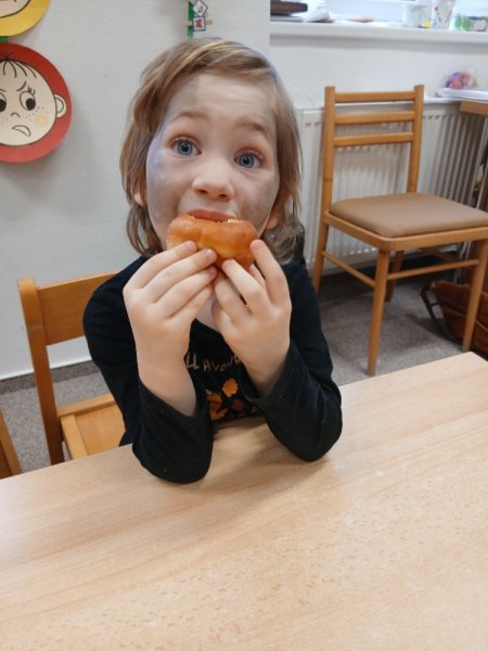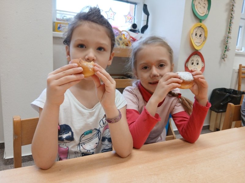 Příprava před masopustem a zasloužená odměna - masopustní koblihy z jílovické cukrárny.